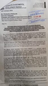 The Human and Environmental Development Agenda (HEDA) has petitioned the Economic and Financial Crimes Commission (EFCC) to investigate alleged financial mismanagement and corruption at the Nigeria Social Insurance Trust Fund (NSITF), involving its Managing Director/Chief Executive Officer, Oluwaseun Mayomi Faleye.