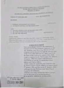 The National Industrial Court (NIC), Abuja, has issued an interim order restraining the National Association of Resident Doctors (NARD) from embarking on any form of industrial action, effectively halting the strike earlier scheduled to commence on Monday, January 12, 2026.