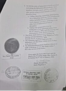 The court further restrained the association from taking any steps preparatory to industrial action from January 12, 2026, pending the hearing and determination of a motion on notice fixed for January 21, 2026.