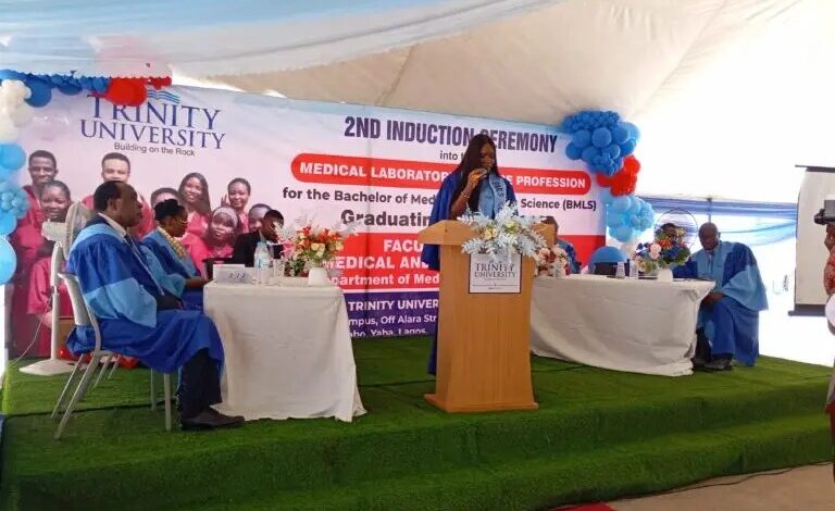 Trinity University, Yaba, on Wednesday held its second induction ceremony for graduates of the Bachelor of Medical Laboratory Science programme.